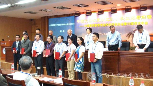 11月1日至3日,中国高等教育学会校史研究分会第十三届学术年会暨中国高等教育学会校史研究分会第四届优秀成果表彰大会于在厦门大学举行,全国近70所高校共160余位专家学者莅会。我校档案馆副馆长汪瑞芳,档案馆校史研究室主任黄珊琦副研究员参加会议,捧回三块奖牌:《老湘雅故事》、《长沙铁道学院校史》均获中国高校校史研究优秀成果二等奖,黄珊琦被授予“中国高校校史研究重要贡献奖”。中国高等教育学会校史研究分...