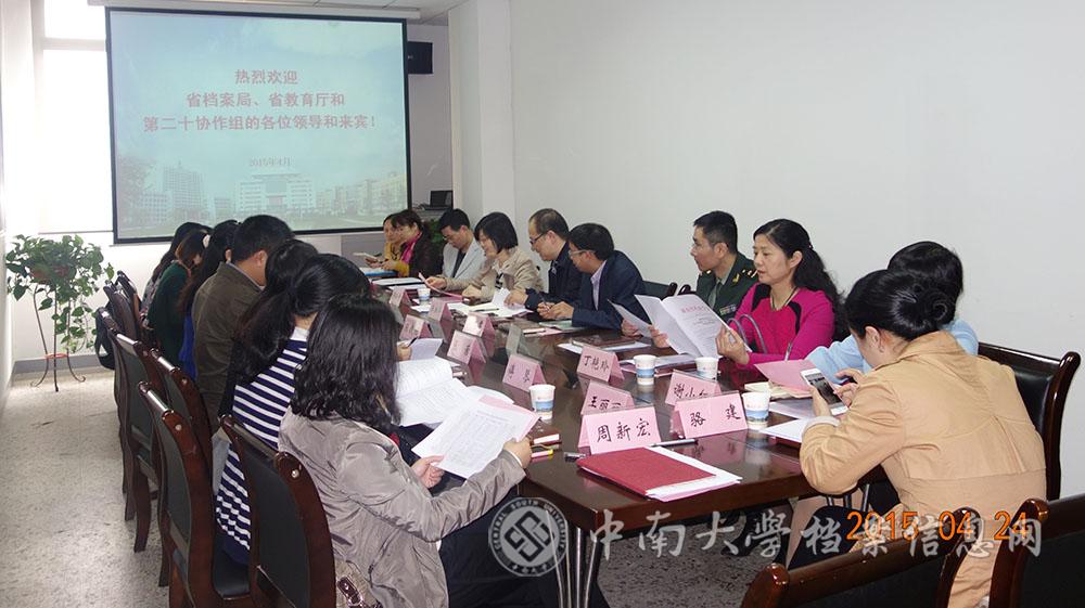 2015年4月24日上午,湖南省直单位档案工作第二十协作组工作会议在我校召开。湖南省档案局业务指导处易小青处长、陈铁炬科长、湖南省教育厅办公室麻文君科长以及二十协作组十四所高校档案馆出席了会议。 会议由中南大学档案馆副馆长汪瑞芳主持。会议分为四个部分进行。首先,由二十协作组组长单位、中南大学档案馆副馆长周新宏传达了湖南省档案局于2015年3月25日召开的湖南省档案工作协作组组长会议的内容和精神。诠释...