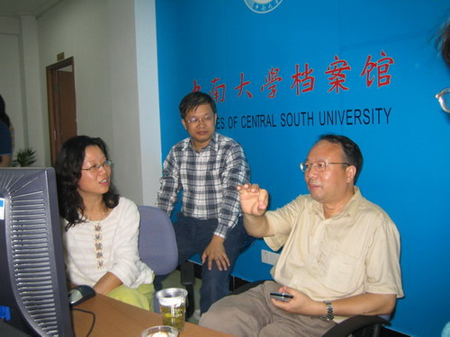 肖晓燕馆长就网上陈列馆向李书记汇报说,建设网上陈列馆,是为了支持学校国家重点实验室的建设,对即将拆除的原中南工业大学校史陈列馆进行的抢救性保护。同时,肖馆长还就网站的板块结构和信息构建等向李书记做了详细的介绍。李书记在听取汇报并浏览网上展厅的部分页面后指出:开通网上校史馆非常有价值和意义,但同时要注意史料的完整和准确性。在浏览到有关“民主楼”、“和平楼”的图片和文字说明时,李书记饶有兴趣地谈起了我校与清华大学的渊源,当他谈到一个又一个的历史典故时如数家珍,档案馆全体人员不得不为李书记渊博的知识和执着的探索精神而倾倒,书记开心地与大家交流着,爽朗的笑声感染了在场的每一个人。