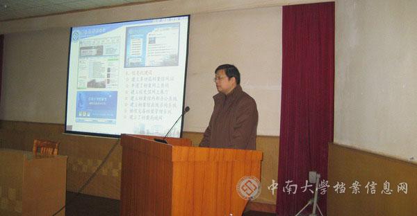 在听取吴世明副馆长的介绍之后,江西省高校档案学会理事长王恺馆长代表参观团对中南大学档案馆的热情接待表示感谢,他说,中南大学档案馆发展很快,在各方面的工作成就,有目共睹,他强调参观团要多记多看,把中南大学档案馆的先进经验和管理理念带回去,认真消化,取长补短提高江西高校的档案管理水平。