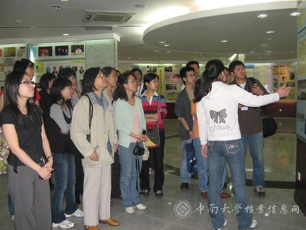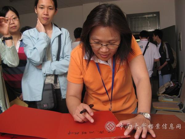 4月19日上午,多日雨后的长沙,阳光特别灿烂,参加这次国际学术研讨会的部分专家学者近50人,沐着春风,在学生志愿者的引导下,分三批先后参观了学校湘雅医学院院史馆,这些专家学者分别来自香港中文大学、台湾成功大学、南京大学、重庆医科大学、首都医科大学、南昌大学医学院等数所知名高校。在展览馆内,湘雅医学院学生院史讲解团的8位讲解员在我馆黄珊琦副研究员的指导下,为来宾进行了认真的讲解。并就来宾所关心的史料问题一一进行了解答。来宾们通过约40分钟的参观,赞叹湘雅医学院历史悠久,有很好的办学及科研传统之余,在佳宾留言簿上题写了自己的感言。先后题词的有香港中文大学、台湾成功大学等教授专家。台湾成功大学专家的题词是:“再创新猷”;香港中文大学专家的题词是:“传承湘雅精神再创医学辉煌”,“百年湘雅 继往开来”。