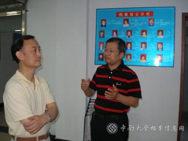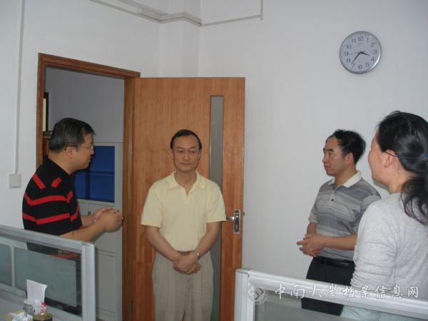 随后,田副校长听取了档案馆的工作汇报。吴世明副馆长从档案馆的基本情况、近几年来所做的工作、存在的问题以及今后的工作设想几方面做了详细的汇报。他说,档案馆这几年从形象建设、基础工作、信息化建设、理论研究和对外交流等方面做了大量的工作,得到了上级主管部门的表彰,也等到了学校领导的肯定,但同时也存在着很多的问题:一是人员问题,知识结构不合理,男女比例不协调;二是经费问题,档案馆的经费严重不足,导致档案得不到很好的保护,信息化建设进程也较慢,拓展新的业务比较困难;三是管理职能问题,一直以来,档案馆的管理职能未能得到很好的发挥;四是馆舍问题,新进档案已无处存放了,这也是阻碍我校档案工作发展的最为突出的问题。对于今后档案馆的发展,吴世明副馆长谈了一些打算和设想,他说,数字档案馆建设应该加大投入,目前,数字档案馆建设已经进入到全文数据库建设阶段,这是个耗资巨大、时间很长、任务最繁重的阶段;二是要加强校史研究工作。学校合并组建已经有十年了,学校应该回顾总结十年的发展历程,整合原4个校区校园文化,凝聚提炼中南大学精神,条件成熟时可考虑成立校史工作领导小组,设立校史工作办公室;三是适当的时候召开学校首次档案工作会议,总结工作,表彰先进;四是落实归档工作提前介入制度。遇有学校重大活动,重大科研项目和重大建设项目时,档案馆要从项目论证开始就介入,全程跟踪指导归档工作;五是将归档工作纳入学校年终考核指标体系,或者实行归档工作一票否决制。