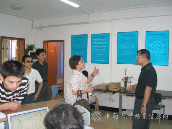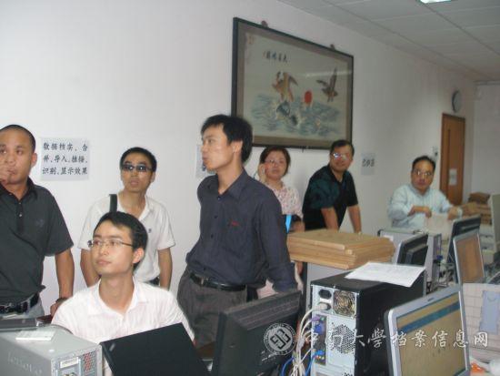 2010年9月13日,湖南师范大学档案馆王芝兰馆长、田支斌副馆长一行来校交流档案工作,详细讨论了档案软件、数字化加工等诸多问题,并参加了服务大厅和数字化加工室。