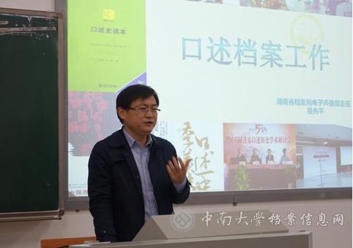 为提高工作人员技术水平,档案馆特邀了湖南省档案局电子声像部易先平部长于2015年12月23日下午,在新校区A座201室举行了一堂 “口述历史工作概论及操作实务”的学术专题讲座。易部长从口述史定义、口述史的项目规划及实施过程中的采访者选择、进程控制、危机预防、采访过程管理、访谈资料整理、口述史的建档、保存和传播等方面进行了系统的阐述和讲解,其讲座内容丰富,语言风趣生动,是一堂深入浅出、理论联系实际的高水平讲座,得到了听讲者的一致好评,对我馆下一步“口述历史”工作的开展具有很强的实际指导意义,操作性极强。