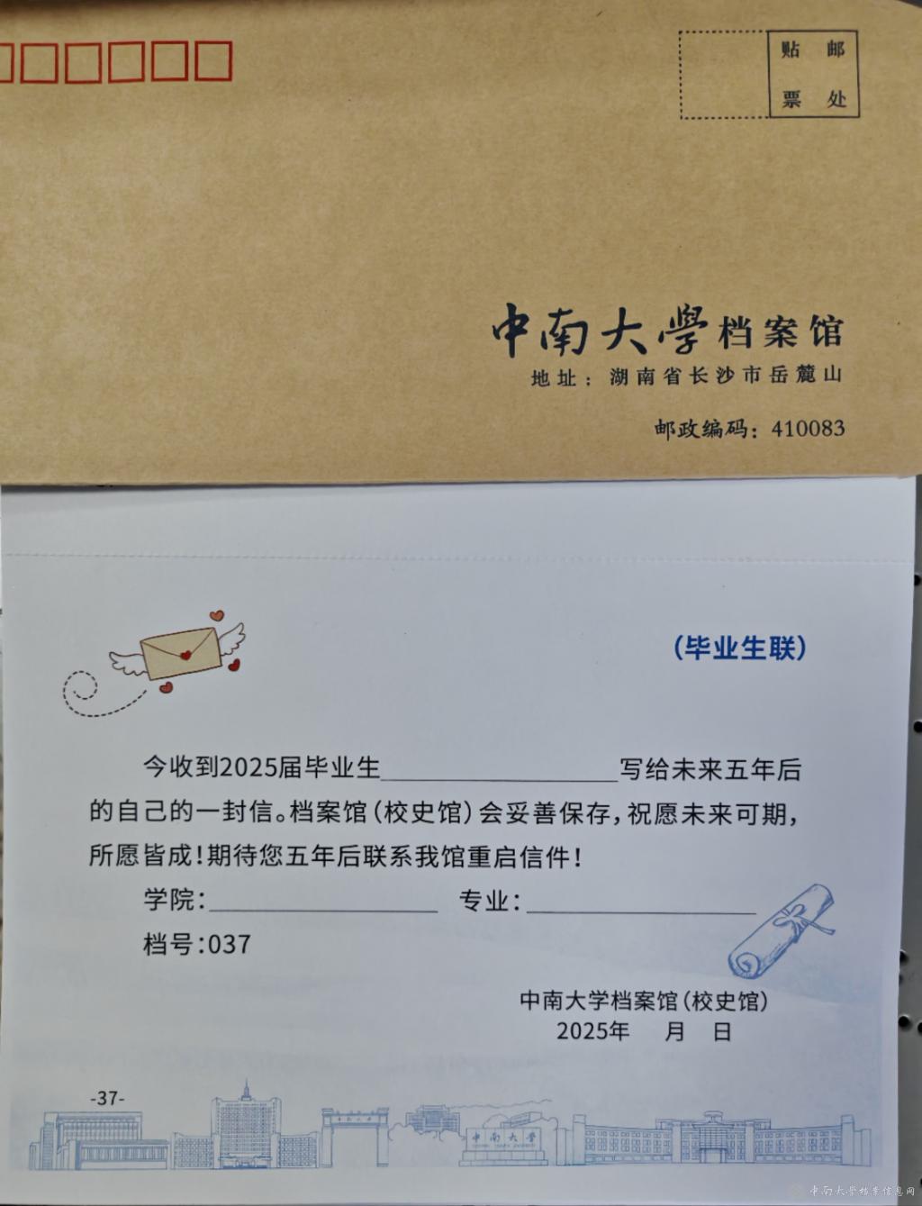 每一封信都是一段青春的切片,每一次抽奖都是母校的祝福。档案馆(校史馆)不仅是历史的守护者,更是情感的摆渡人。愿2025届毕业生们带着中南人的烙印,在未来的星辰大海中熠熠生辉!五年后,期待与你们共同开启这段‘时光之旅’。